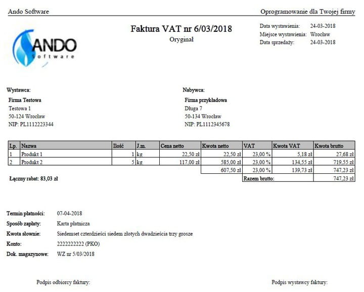 FV-Ando Software PL - łatwe i szybkie wystawianie rachunków bez VAT lub faktur z VAT i JPK - zawsze najnowsza wersja i darmowe aktualizacje - oficjalna polska dystrybucja